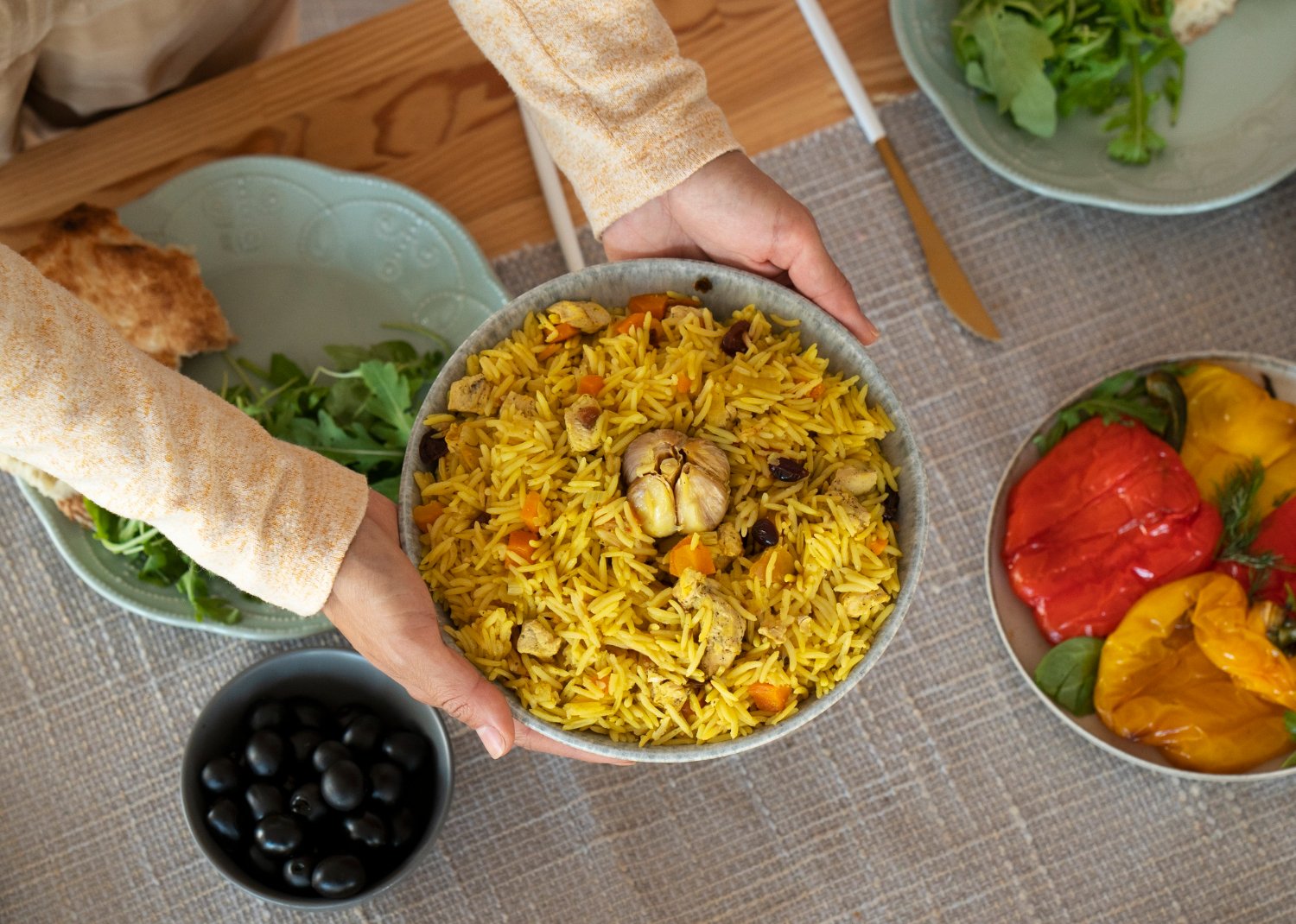 - اختيار نوع الأرز: يُفضّل استخدام الأرز البسمتي لعمل الرز البخاري، حيث يتميز بحبوبه الطويلة وقدرته على امتصاص النكهات بشكل جيد.